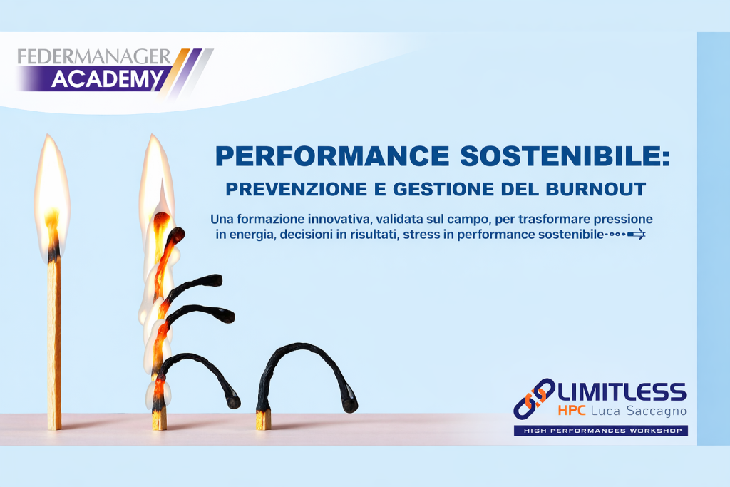 Il Burnout dei Manager: un problema da non sottovalutare! Iscriviti al corso "PERFORMANCE SOSTENIBILE: PREVENZIONE E GESTIONE DEL BURNOUT" in partenza il 20 gennaio 2026: una formazione innovativa, validata sul campo, per trasformare pressione in energia, decisioni in risultati, stress in performance sostenibile.